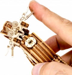 Asamblarea este intuitivă și curată – piesele din placaj de mesteacăn de înaltă calitate se îmbină perfect, totul fiind însoțit de un ghid ilustrat. Roțile cauciucate pentru aderență mai bună, imitațiile de faruri și direcția ușor de controlat accentuează realismul. După asamblare, transformă ambalajul într-un suport practic.