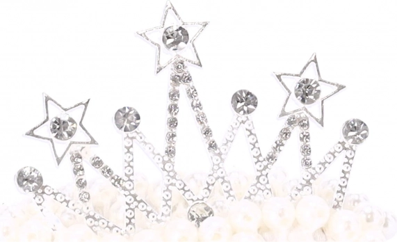 - Aspect stilat: perle și detaliu de coroană pentru un aer discret festiv.