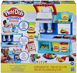 Lăsați copiii să exploreze lumea gătitului cu setul de joc Creații de Bucătărie Play-Doh. Acest set interactiv oferă multe posibilități: copiii pot crea pizza, burgeri, paste sau pui folosind ștampile amuzante — doar apăsând pârghia, preparatele sunt gata.