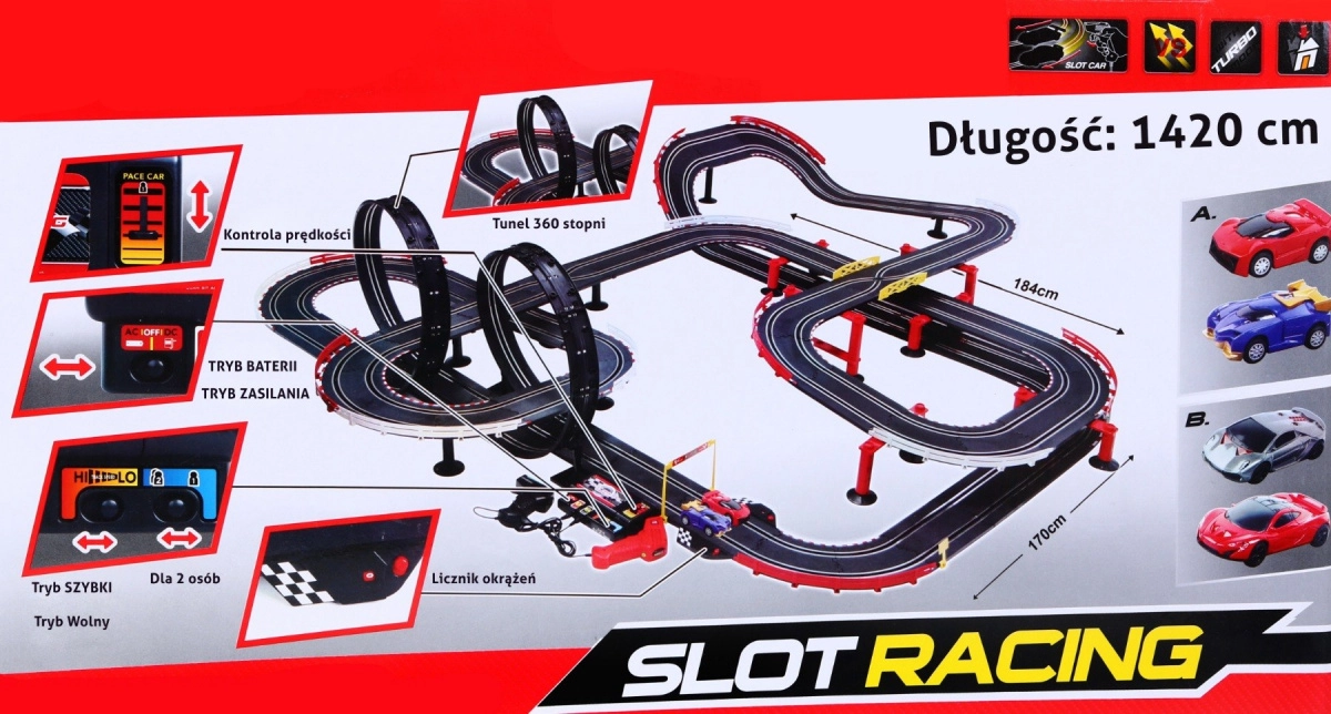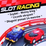 Pistă de curse cu lungime de 14 metri oferă distracție de neuitat pentru tinerii pasionați de curse. Cu această pistă, copiii pot experimenta adevăratele senzații tari ale curselor rapide cu moduri de viteză interschimbabile.