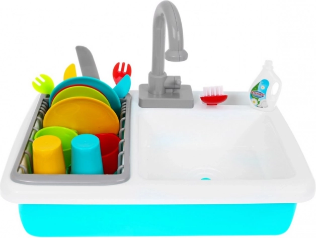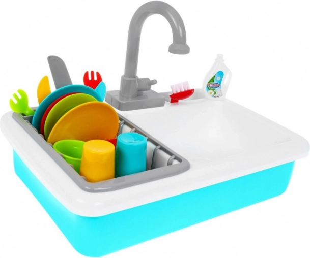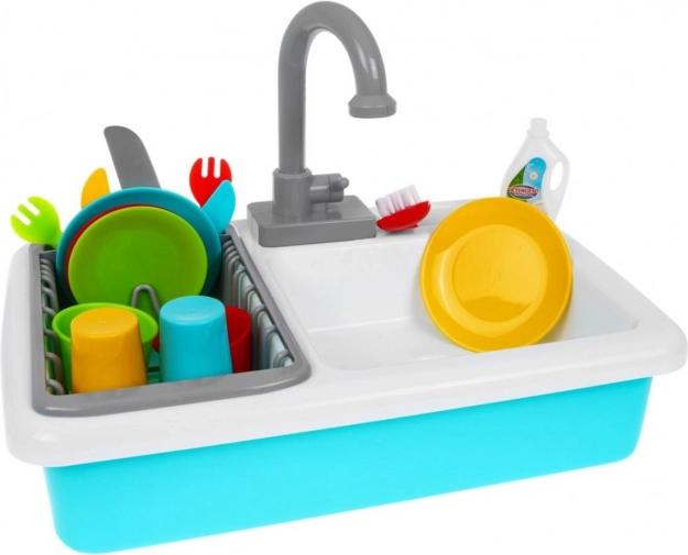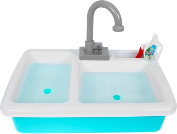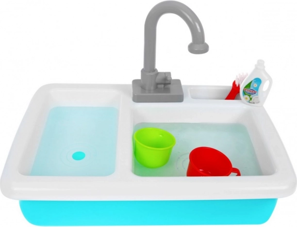 Această chiuvetă pentru copii unică nu doar că oferă posibilitatea imitării unei chiuvete de bucătărie reale, dar și încurajează distracția și dezvoltarea obiceiurilor. După umplerea rezervorului cu apă și rotirea robinetului, curge un flux fin de apă, astfel încât părinții nu trebuie să se teamă de dezordine. Chiuveta este ideală pentru băieți și fete, oferind o experiență de joc realistă.
