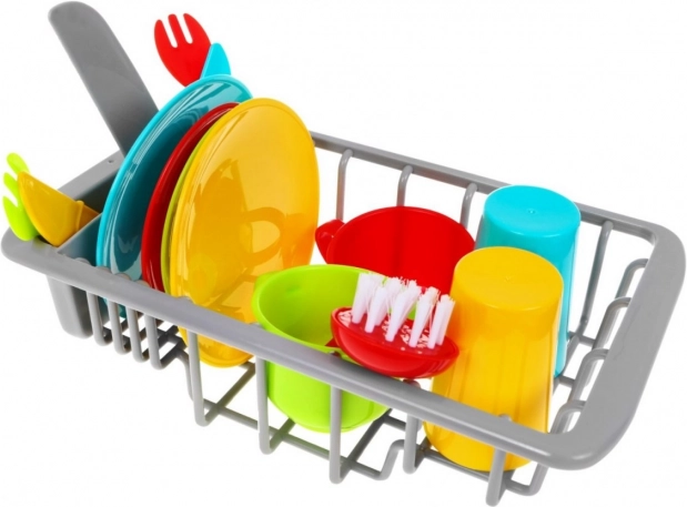 Chiuveta cu robinet simulează o adevărată chiuvetă de bucătărie și încurajează jocul de imitație.