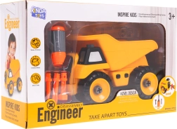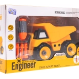 Această basculantă de construcție din plastic, cu șurubelniță, este ideală pentru copiii care iubesc creația și tehnica. Datorită sistemului simplu cu șuruburi, copilul își antrenează coordonarea mână–ochi, răbdarea și înțelege principiile de bază ale asamblării și dezasamblării. Bena ridicabilă oferă un plus de realism jocului – încarcă, transportă și descarcă.
