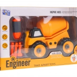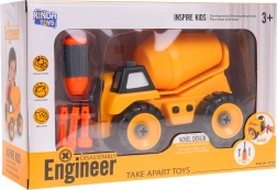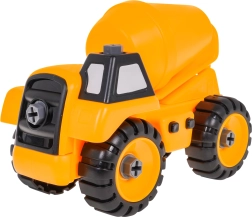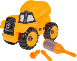 Betonieră distractivă de asamblat pentru micii constructori de la 3 ani, care dezvoltă motricitatea fină, gândirea logică și creativitatea. Datorită plasticului rezistent, vehiculul poate fi dezasamblat și reasamblat în mod repetat, tamburul este ridicabil, rabatabil și rotativ. Include șurubelniță cu 3 biți interschimbabili.