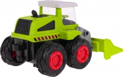 Datorită anvelopelor din cauciuc cu profil pronunțat, vehiculul își păstrează stabilitatea pe diferite suprafețe. Tracțiunea pe roțile din spate susține mișcarea lină și face jocul și mai realist. Ideal ca dar pentru micii constructori și pasionații de utilaje agricole și de construcții.