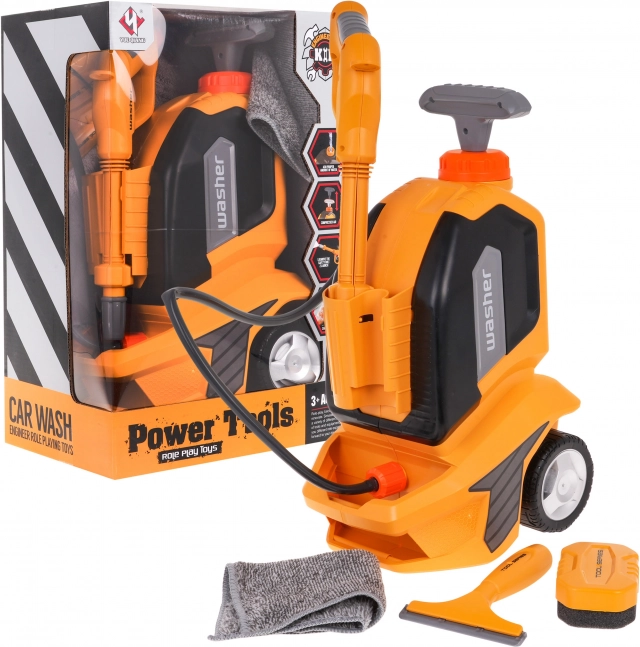 Setul include mașina de spălat, racleta, burete și cârpă pentru întreținere completă și jocuri creative cu prietenii.