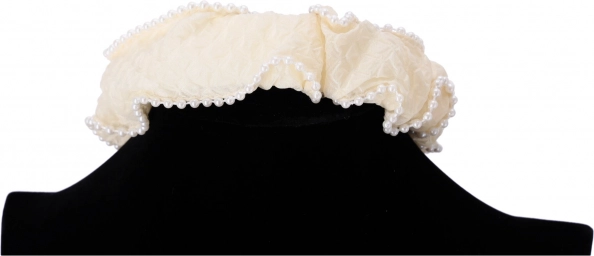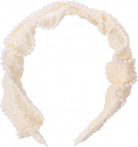 Această bentiță albă cu perle mici este un accesoriu stilat care ridică la nivel superior chiar și o ținută simplă. Suprafața textilă cu efect încrețit și bordura discretă cu perle emană eleganță, păstrând finețea. Se potrivește de minune cu părul lăsat liber, coadă sau coc.