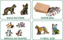 Asamblarea unui puzzle cu piese de forme diferite este mai dificilă și reprezintă o provocare mai mare decât asamblarea unui puzzle clasic. Puzzle-ul este, în plus, cu două fețe: îl puteți asambla fie după imagine (fața), fie după formă (verso cu model). Marca WOODEN CITY, pe lângă conceptul unic de puzzle, nu uită de ecologie, de aceea la aceste produse nu veți găsi ambalaje din plastic. Cu piese modelate unic care reprezintă clădiri cunoscute, obiecte sau animale, în funcție de tematica motivului. Grad de dificultate mai ridicat cu un număr mai mic de piese – asamblarea unui puzzle cu piese de forme diferite este mai solicitantă.