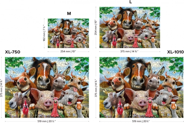 Puzzle-ul din lemn cu tema „viața la fermă” oferă o experiență unică de asamblare a unei imagini colorate pline de animale vesele. Datorită decupajului cu laser al fiecărei piese cu grosimea de 3–4 mm, asamblarea este fluidă și distractivă, iar unele piese au forma unor figurine individuale. Imprimarea pe ambele fețe permite asamblarea atât după imagine, cât și după modelul de pe verso.