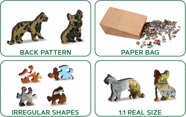 Acest set este o alegere excelentă pentru seri în familie și pentru dezvoltarea gândirii creative și logice. Fiecare dintre cele 200 de piese este unică, făcând asamblarea mai provocatoare decât la puzzle-urile clasice. Imaginea finală, cu dimensiunile 254 × 182 mm, poate servi drept decorațiune originală. Brandul WOODEN CITY are grijă de ecologie – fără ambalaje din plastic.