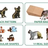 Piesele special formate în forme de animale și obiecte dau viață asamblării. Partea verso cu un model decorativ adaugă o nouă provocare.