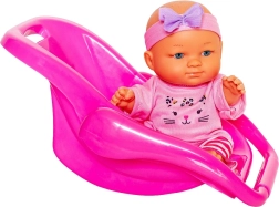 Marsupiu/legănici din plastic roz cu mâner integrat pentru transportul în siguranță al păpușii acasă și afară. Ideal pentru jocuri realiste de îngrijire.