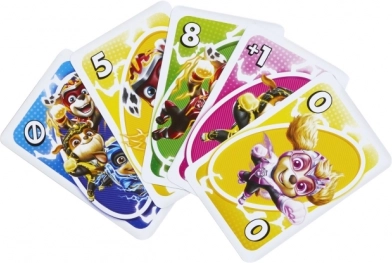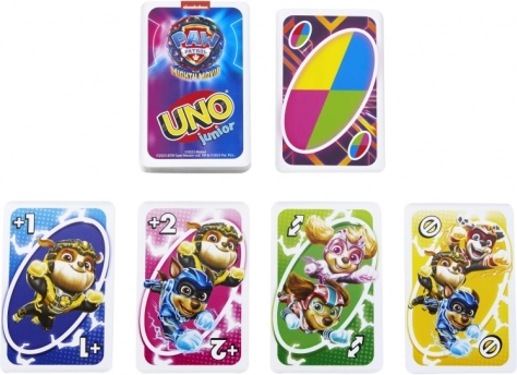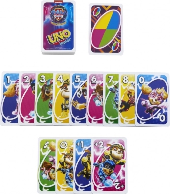 Îndrăgitul joc de familie UNO sosește în variantă pentru copii, cu tematică din filmul Patrula Cățelușilor. Cărțile colorate, cu numere mari și personaje, facilitează recunoașterea și susțin învățarea culorilor, numerelor și principiilor de joc de bază.