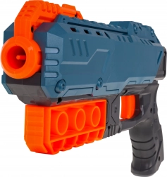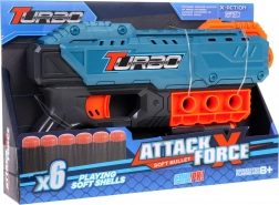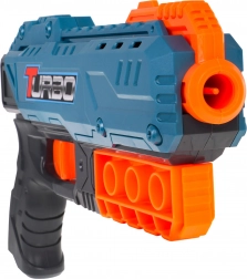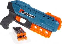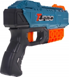 Sub țeavă sunt disponibile trei orificii pentru depozitarea gloanțelor de rezervă, ca să poți continua jocul rapid. Priza ergonomică și construcția ușoară fac din pistolul Turbo o alegere excelentă pentru tinerii trăgători care caută operare simplă și performanță fiabilă.
