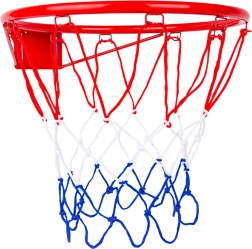 Plasa tricoloră de calitate se fixează ușor pe cârligele inelului și permite căderea lină a mingii, fără încurcare.