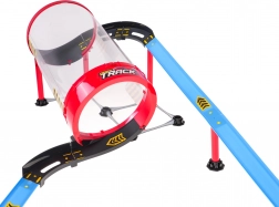 Tubul transparent permite urmărirea mașinuței pe întreaga buclă. Mașinuțele rulează cu viteză mare și reușesc un looping efectuos fără baterii.