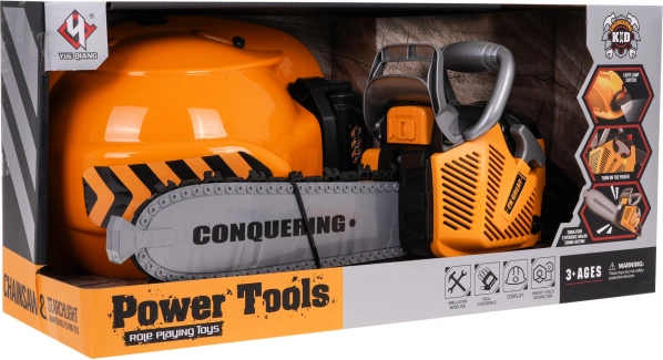 | . | Setul interactiv de ferăstrău mecanic cu efecte sonore și cască cu lanternă este destinat copiilor de la 3 ani. Ferăstrăul este complet sigur pentru copii. A fost fabricat din plastic de cea mai înaltă calitate și nu are muchii ascuțite. Lanțul este din cauciuc. Porniți ferăstrăul trăgând de sfoara de pornire, apoi veți auzi sunetul motorului care pornește. Pentru a porni lanțul, apăsați și mențineți apăsat butonul inferior de pe mâner. Lanțul va începe să se rotească și să emită sunet de tăiere. Setul include o cască cu lumină reglabilă și elastic sub bărbie. Ferăstrăul este alimentat de 3 baterii AAA 1,5V, bateriile nu sunt incluse. Casca este alimentată de 3 baterii de tip AG13, bateriile sunt incluse. .Funcțiile setului: .- efecte sonore (pornire motor, sunete de tăiere), .- efecte luminoase - lumină pe cască, LED în partea frontală a ferăstrăului, .- lanț din cauciuc rotativ. |