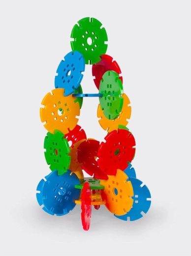 Seturile didactice circulare de construcție aduc o formă ludică de învățare pentru micii exploratori. Fiecare element, cu diametrul de 24 cm, se potrivește perfect în mâna copiilor și ajută la dezvoltarea motricității fine, a concentrării și a planificării strategice. Paleta sobră de patru culori de bază sprijină concentrarea și creativitatea fără stimuli inutili.