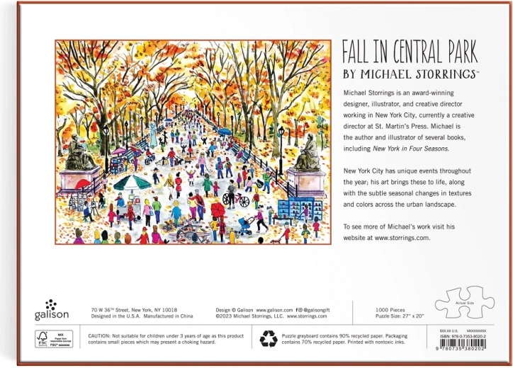 Startați provocarea pe masa dumneavoastră, care vă va purta în peisajul pitoresc al toamnei din Central Park. Această piesă de artă din lemn de Michael Storrings conține o mie de piese care se potrivesc precis, realizate din materiale reciclate. Nu doar că oferă ore de distracție, dar aduce și liniște și un sentiment de reușită prin construirea unei imagini perfecte.