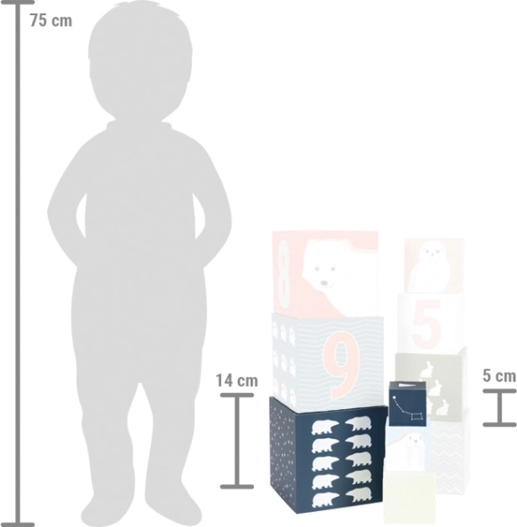 Prezentăm cuburile unice pentru stivuire Arctic, care combină educația și jocul. Cu zece cuburi fabricate din carton durabil cu certificare FSC, oferă copiilor o oportunitate distractivă de a învăța bazele numerelor, culorilor și dimensiunilor. Fiecare cub este decorat cu motive de animale polare și numere, stimulând nu doar creativitatea, ci și motricitatea fină a micilor constructori.