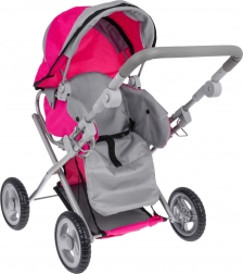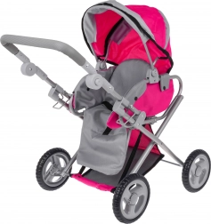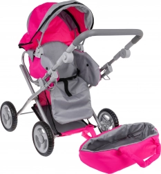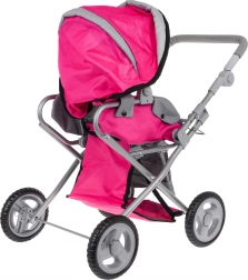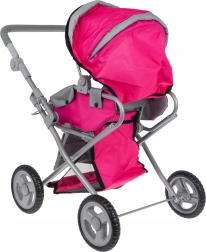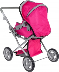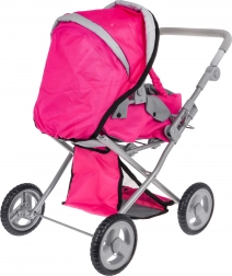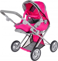 Un cărucior pentru păpuși roz, stilat, 2 în 1 pentru copii de la 3 ani. Oferă gondolă detașabilă și scaun sport, mâner reglabil 30–54 cm, centuri de siguranță, reglarea scaunului și capotină pliabilă. Datorită construcției metalice ușoare și posibilității de pliere rapidă pentru transport, este ideal atât acasă, cât și în călătorii; nu lipsește nici coșul din plasă pentru accesorii.