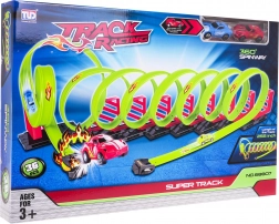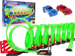 Pornește cursele acasă la maximum! Această pistă de curse extremă cu bucle 360°, 2 mașinuțe cu mecanism pull-back și 36 de piese de construcție oferă copiilor de la 3 ani ore întregi de distracție plină de acțiune. Construiește o configurație originală, lansează mașinuțele și urmărește viteza mare, trecerile prin cercul de foc și spectaculoasele loopinguri.