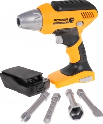 Setul de mini-unelte este ideal pentru micii meșteri cu vârsta de peste 3 ani, oferindu-le o experiență realistă de joacă cu o bormașină interactivă. Bormașina nu doar că arată ca una adevărată, dar chiar funcționează! Cu biți interschimbabili și două direcții de rotație, micuții pot învârti și desface ușor șuruburi. Echipată cu efecte sonore și luminoase, bormașina își completează setul de funcționalități printr-un acumulator detașabil, similar celor folosite de adulți. Funcționează cu baterii 3 x AAA 1,5V, care nu sunt incluse în pachet.