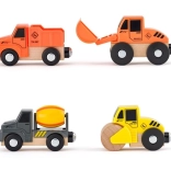 Construcția din lemn, combinată cu elemente din plastic rezistente, oferă o durată lungă de viață și o utilizare sigură. Datorită dimensiunilor compacte, vehiculele sunt confortabile pentru mâinile mici și ideale atât pentru acasă, cât și pentru călătorii. O alegere ideală pentru preșcolarii care iubesc utilajele și lumea construcțiilor.