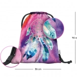 Datorită închiderii prin strângere cu șnururi solide, săculețul se închide în siguranță și poate fi purtat ca un rucsac confortabil pe spate. Designul minimalist și motivul îndrăgit vor bucura atât copiii, cât și adulții.
