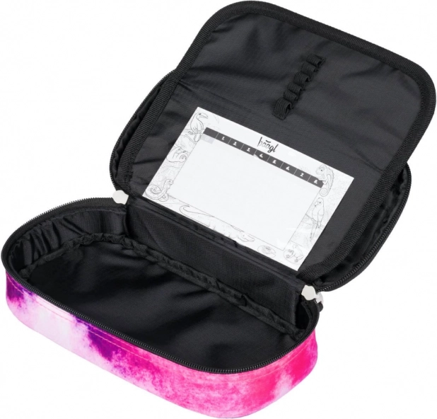 Designul atrăgător în tonuri de albastru și mov oferă echipamentului școlar un stil aparte și motivează la ordine în penar.