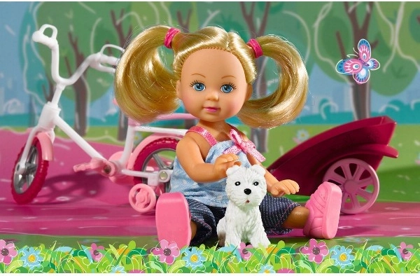 Păpușa EVI LOVE pe scuter cu cățeluș și pisicuță, 12 cm