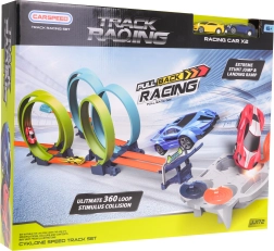 Acest set de curse oferă distracție plină de bucle, provocări de viteză și sărituri aventuroase. Cu pista dublă și posibilitatea de a concura în paralel, distracția este garantată pentru întreaga familie. Mașinuțele cu mecanism de retragere ating viteze amețitoare și depășesc buclele ascuțite, în timp ce se îndreaptă spre finish.