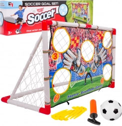 Setul include tot ce este necesar pentru joc - poartă, plasă, minge și pompă.