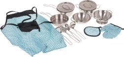 Inclusiv un șorț de bucătărie, ceea ce face acest set și mai atractiv. Susține distracția și dezvoltă abilități ale copiilor în jocul de-a bucătarul.