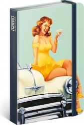 Acest caiet de notițe nu este doar stilat, ci și practic. Designul retro cu temă de fete pin-up va cuceri orice iubitor al stilului clasic. Oferă 172 de pagini cu linii de culoare crem, care oferă spațiu suficient pentru idei și notițe. Hârtia de 100 g/m² asigură o experiență plăcută de scris și reduce la minimum sângerarea cerneala. Buzunarul interior este ideal pentru a depozita mici notițe și cărți de vizită.