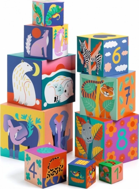 Turnul colorat de stivuire de la DJECO îi încurajează pe micii constructori să descopere lumea numerelor, formelor și culorilor. Copiii pot așeza cuburile unele peste altele sau le pot introduce unul în altul, dezvoltând astfel motricitatea fină, coordonarea mână–ochi și familiarizându-se în mod natural cu numerele și animăluțele. Din 10 cuburi se construiește o piramidă de 86 cm înălțime – iar dărâmarea ei este la fel de distractivă ca și construirea.