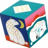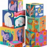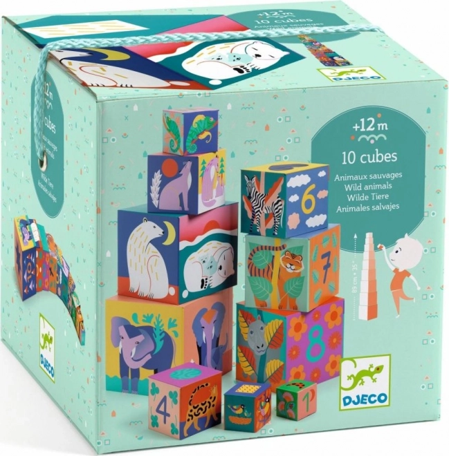 Cuburile de stivuire cu ilustrații de animale sălbatice invită la descoperire și învățare jucăușă. Copiii exersează sortarea după mărime, recunoașterea culorilor și numărarea de la 1 la 10, în timp ce își spun povești despre animăluțe. Construcția din carton solid este ușor de ținut în mână și sigură pentru cei mai mici, de la 12 luni.