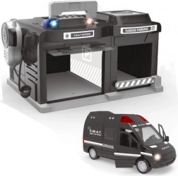 Acest set de joc plin de acțiune îi va încânta pe toți micii fani ai vehiculelor S.W.A.T. și ai misiunilor aventuroase. Printr-o simplă apăsare a butonului din partea superioară a mașinii se activează efectele luminoase și efectele sonore autentice, care intensifică atmosfera jocului. Un alt buton pe partea stângă pornește apelurile și conversațiile vocale prin difuzor, astfel încât copiii se pot cufunda ușor în rolul comandantului intervenției.