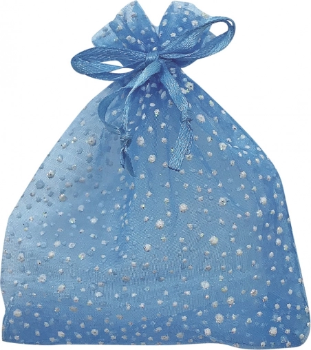 Acest săculeț elegant din organza, de culoare albastru deschis cu sclipici, este ideal pentru diverse ocazii, fie pentru ambalarea cadourilor, bijuteriilor sau obiectelor mici. Săculețul este confecționat din organza de calitate, transparentă, care oferă produsului un aspect luxos.