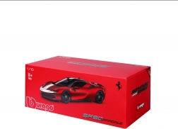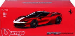 Modelul Ferrari SF90 Stradale Assetto Fiorano 2020 de la Bburago redă fidel caracterul primului plug‑in hibrid FERRARI. Ediția specială Assetto Fiorano este orientată spre performanță maximă și dinamică de rulare – elemente reflectate și în execuția exactă a modelului. Vopseaua roșie cu detalii contrastante evidențiază designul sportiv și liniile aerodinamice.
