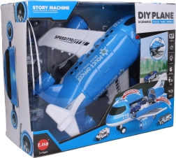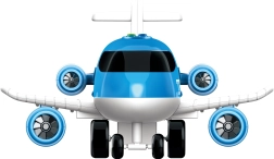 Descoperă distracția la sol și în aer. Avionul mare cu efecte este pregătit de acțiune – prin apăsarea celor patru butoane de pe fuselaj se activează efectele de lumină și sunet, care amplifică experiența realistă de zbor. Datorită mecanismului inerțial, avionul rulează lin pe podea, iar cu rampa spate deschisă poți încărca și descărca ușor mașinuțele.
