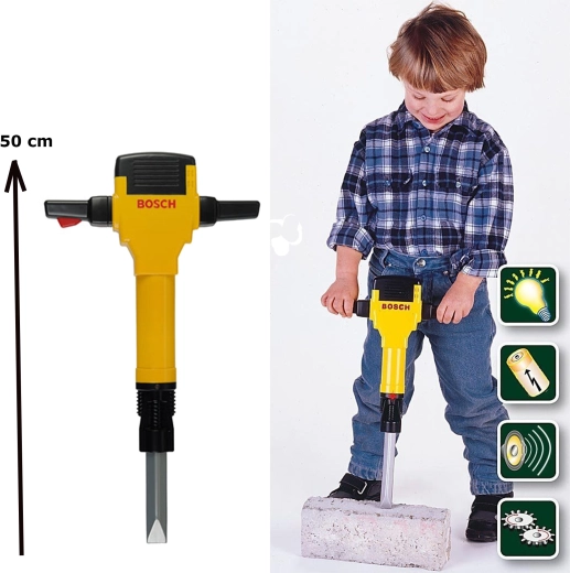 Ciocanul pneumatic pentru copii, realist, sub licența BOSCH mini de la Klein oferă efecte luminoase și sonore, vârf extensibil și mânere duble pentru o prindere confortabilă. Construcția ușoară și rezistentă este adaptată copiilor de la 3 ani pentru joacă sigură și creativă.