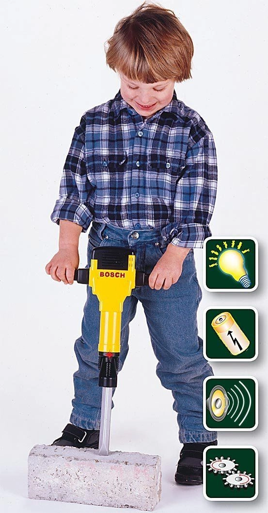 Ciocanul pneumatic pentru copii BOSCH de la Klein este o replică fidelă a unui instrument real și este ideal pentru micii constructori. Designul galben cu elemente negre și argintii, logo-ul BOSCH roșu și ergonomia eficientă susțin dezvoltarea imaginației și a motricității fine.