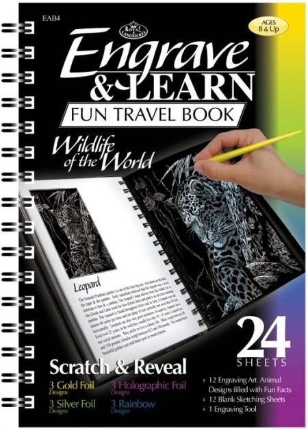 Descoperiți farmecul imaginilor de zgâriat, care sunt populare de generații. Folosind stiloul de zgâriat din plastic inclus, cu vârf de metal, zgâriați liniile imaginii imprimate și dezvăluiți substratul auriu, argintiu, curcubeu sau holografic sub stratul negru. Fiecare operă de artă este unică și asigură ore de distracție.