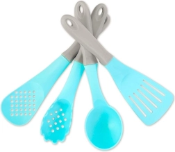 Setul de lingură, polonic, spatulă și furculiță de servire este ideal pentru „gătit” non-stick și joc în siguranță, fără margini tăioase.