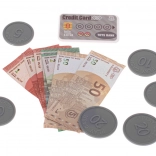 Setul include diferite tipuri de bani pentru copii, card de credit și o gamă variată de produse, adăugând un sentiment realist jocului de vânzare.