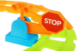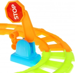 Luminile colorate de pe coșul trenului aduc un alt nivel de interacțiune în joacă.