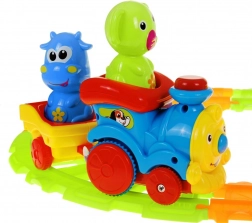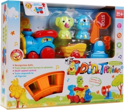Această jucărie interactivă tren adaugă o notă unică fiecărei jocuri de copii. Trenul este compus dintr-o locomotivă și un vagon, care sunt ușor de conectat, asigurând astfel distracție nelimitată pe trasee. Jucăria produce efecte sonore și luminoase, care îi vor fascina pe copii și le vor capta atenția.
