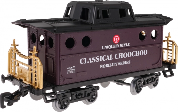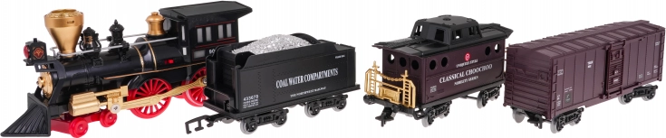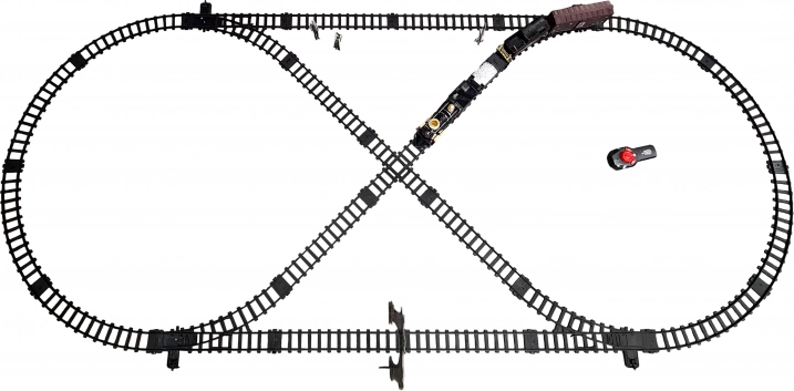 Pistă de tren retro cu telecomandă, distractivă pentru copiii de la 5 ani, oferă o experiență cu adevărat autentică, cu efecte de fum și sunete realiste de mers. Setul include șine și telecomandă, care asigură control complet asupra direcției și vitezei de deplasare.