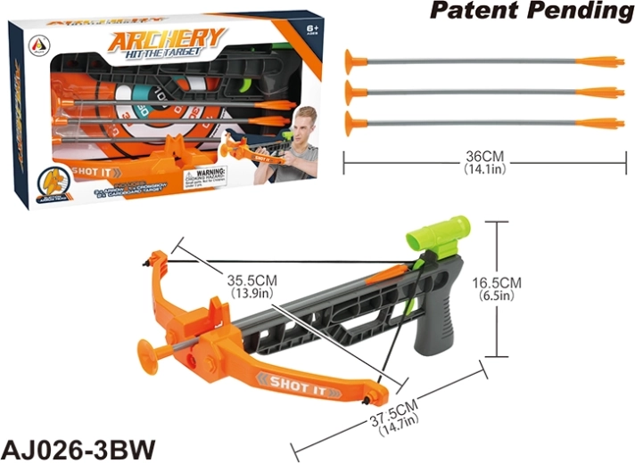 Arbaleta este realizată din plastic ușor și sigur, asigurând o manipulare și siguranță facilă pentru copii în timpul jocului.